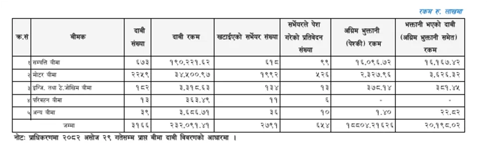 बीमा पोर्टफोलियोअनुसार दाबीको अवस्था र भुक्तानी प्रक्रिया क्रमशः अगाडि बढिरहेको बीमा कम्पनीहरूले जनाएका छन्।
