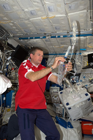 In his first experiment, Andreas filtered Station waste water through a ‘biomimetic’ membrane from Denmark. The membrane mimics nature to create clean drinking water using a nano-technology that requires no energy. The output will now be analysed to see if it can be used in space in the future.